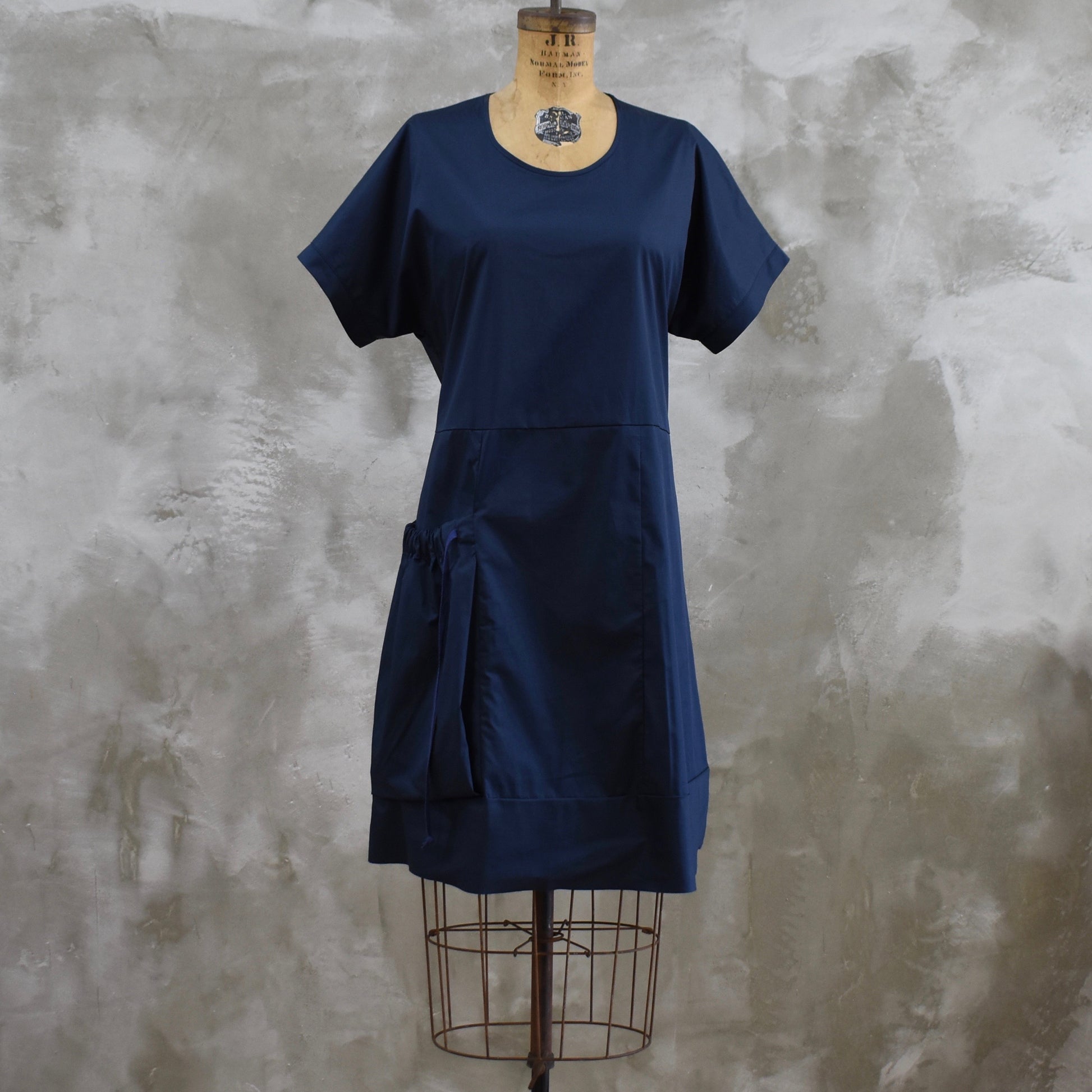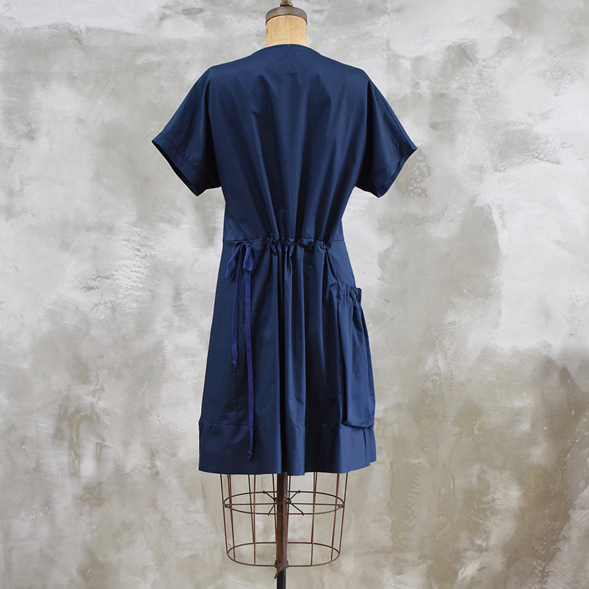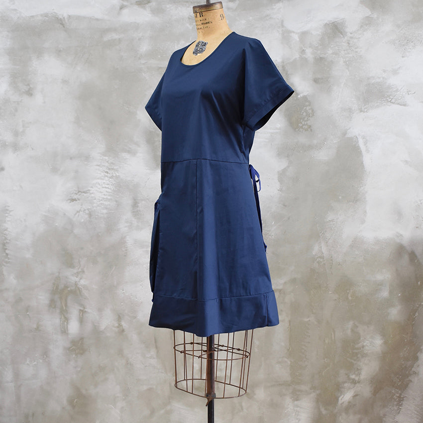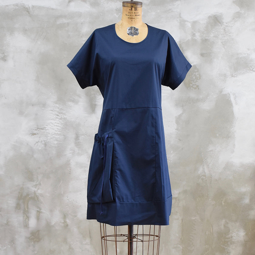 You're able to gather the back waist with the cotton ties to bring shape and texture to your look. Additionally the large gathered side pocket is a feature that can also be pulled in a little more with it's cotton tie and is big enough to hold your phone, keys, cards etc. while creating an interesting asymmetric textural statement.