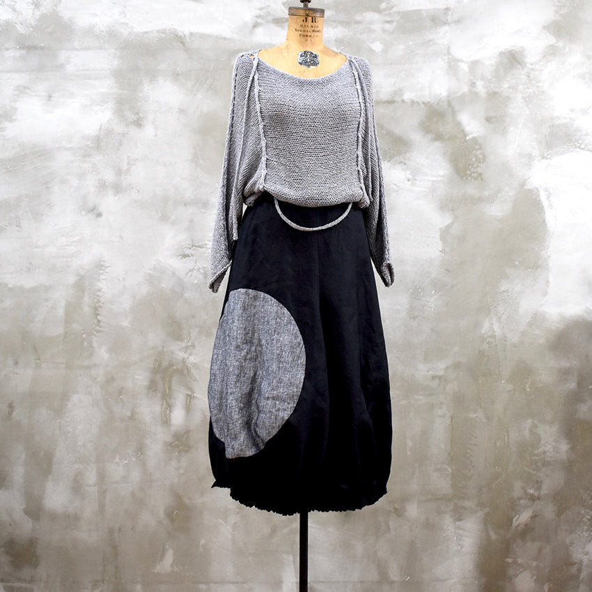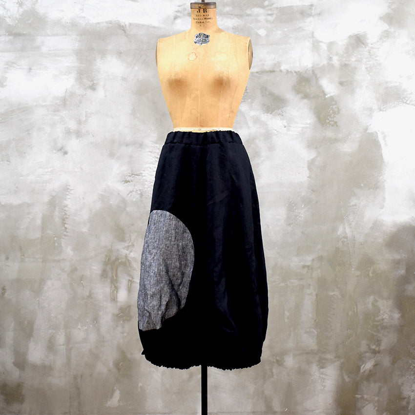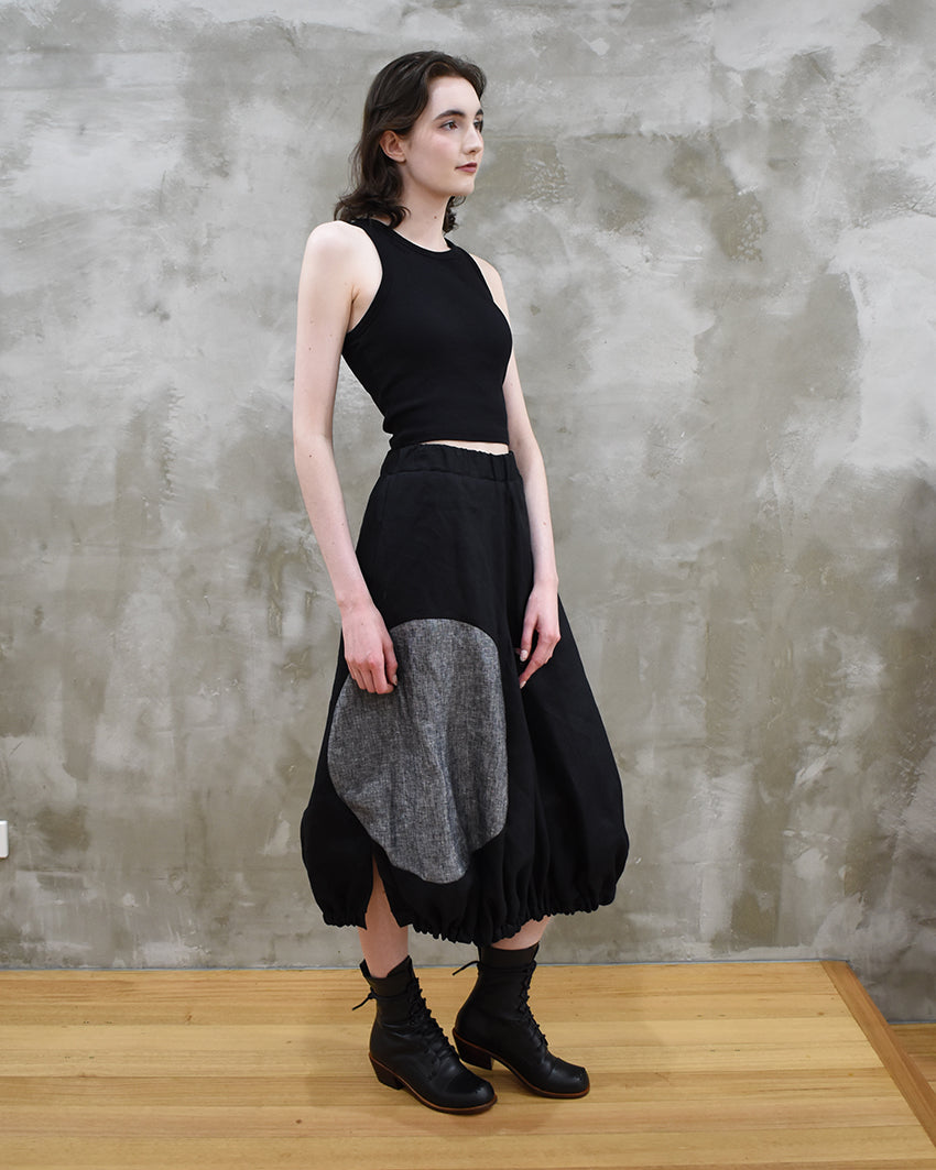The Zentrum Midi Skirt is crafted in Belgian Linen and features a contrast inset circle. The hem is elasticised creating a beautiful tulip shape.
