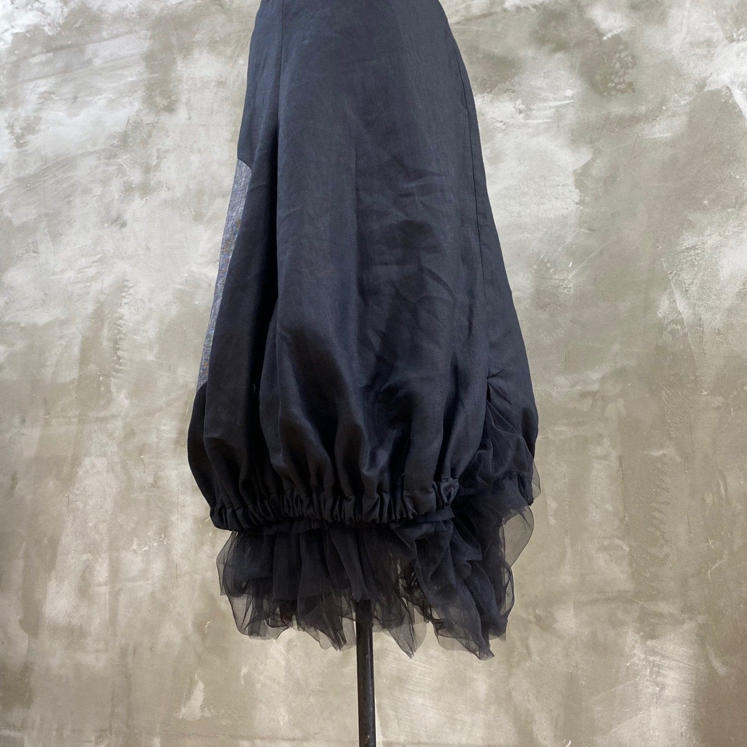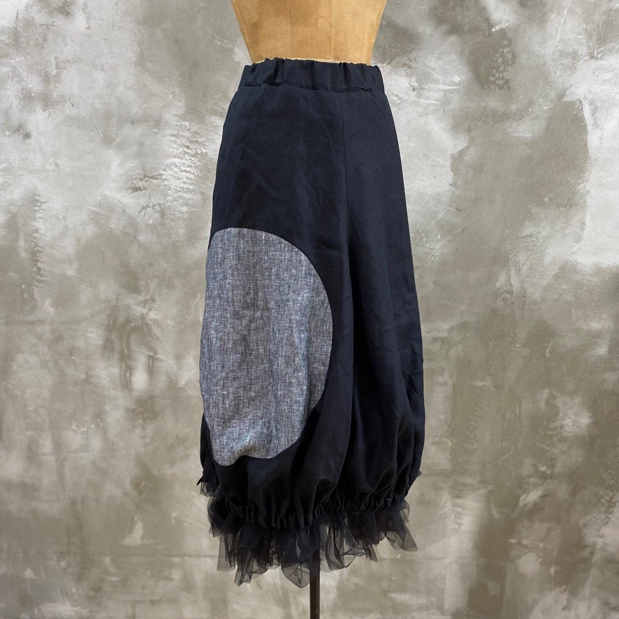 Create a dramatic look when you wear this skirt, slim through the hips flaring out fully through the knees and gathered in with elastic at the hem to create a very flattering silhouette.